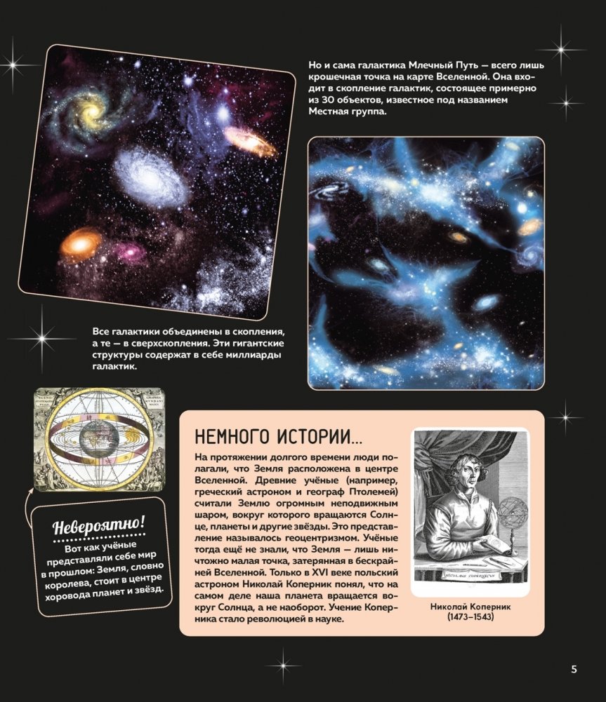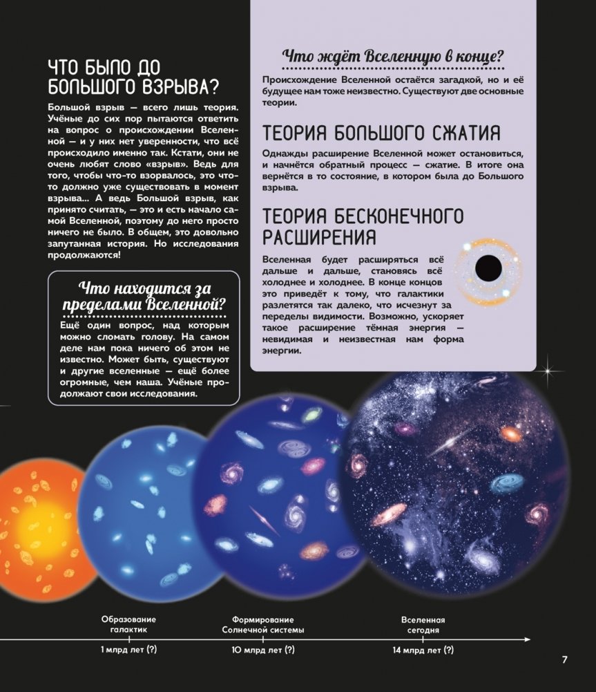 Хотелось бы тебе узнать множество удивительных фактов о кометах, метеоритах, астероидах и планетах Солнечной системы и открыть все тайны нашей Вселенной? Благодаря этой богато иллюстрированной энциклопедии ты сможешь выяснить, когда на Земле зародилась жизнь, почему существуют разные времена года, что такое орбита, где находится пояс астероидов, а также рассмотреть вблизи Солнце, Луну и карту звёздного неба. А ещё ты прочитаешь про подвиг наших великих соотечественников, навсегда изменивших историю космонавтики, и узнаешь, какие исследования проводят специалисты на МКС.