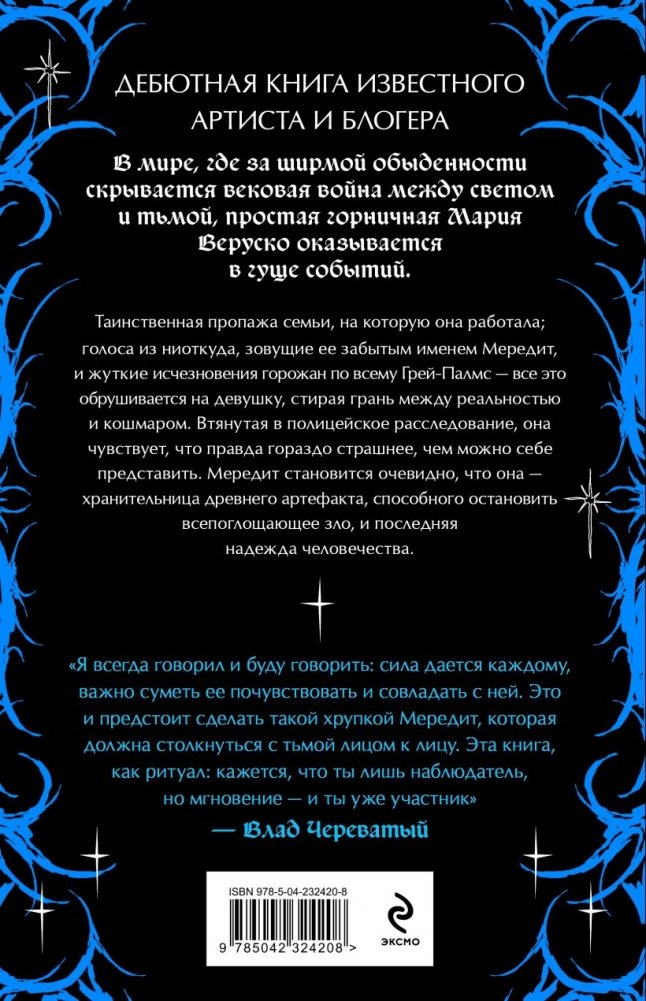 В мире, где за ширмой обыденности скрывается вековая война между светом и тьмой, простая горничная Мария Веруско оказывается в гуще событий. Таинственная пропажа семьи, на которую она работала; голоса из ниоткуда, зовущие ее забытым именем Мередит, и жуткие исчезновения горожан по всему Грей-Палмс — все это обрушивается на девушку, стирая грань между реальностью и кошмаром. Втянутая в полицейское расследование, она чувствует, что правда гораздо страшнее, чем можно себе представить. Мередит становится очевидно, что она — хранительница древнего артефакта, способного остановить всепоглощающее зло, и последняя надежда человечества.