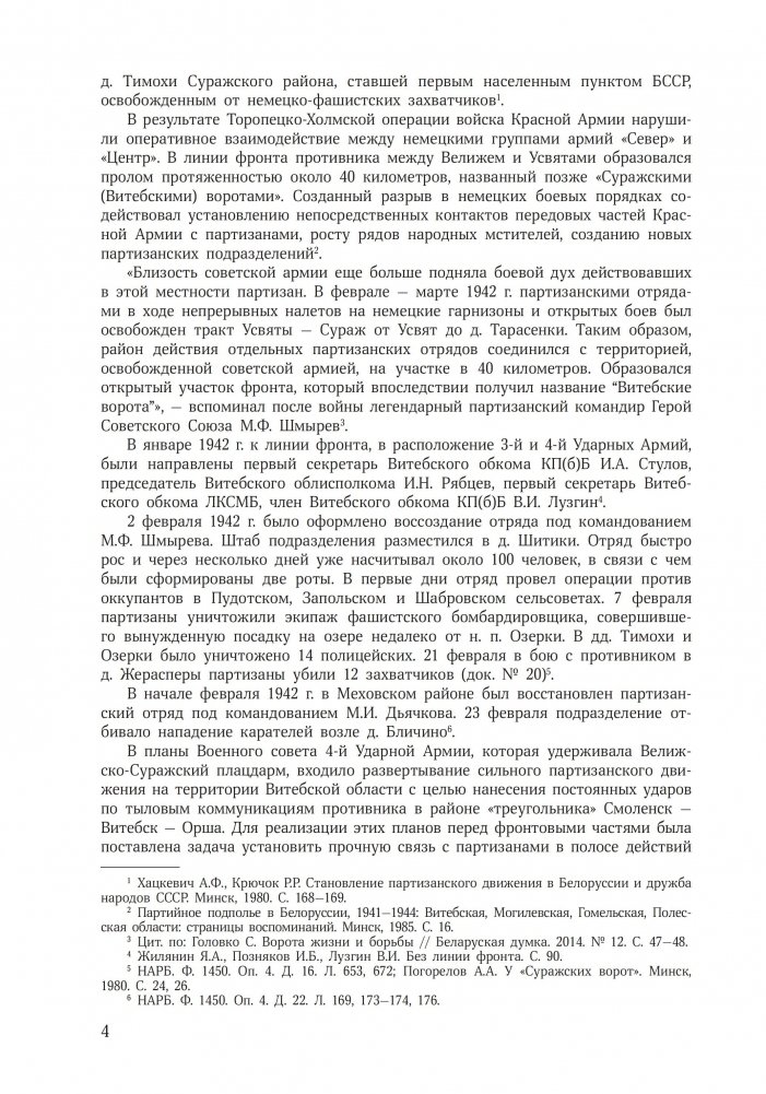 Сборник документов рассказывает о создании Красной Армией и партизанами в феврале — сентябре 1942 г. «Суражских (Витебских) ворот» — разрыва линии фронта между Велижем и Усвятами, и развитием в связи с этим партизанского движения.