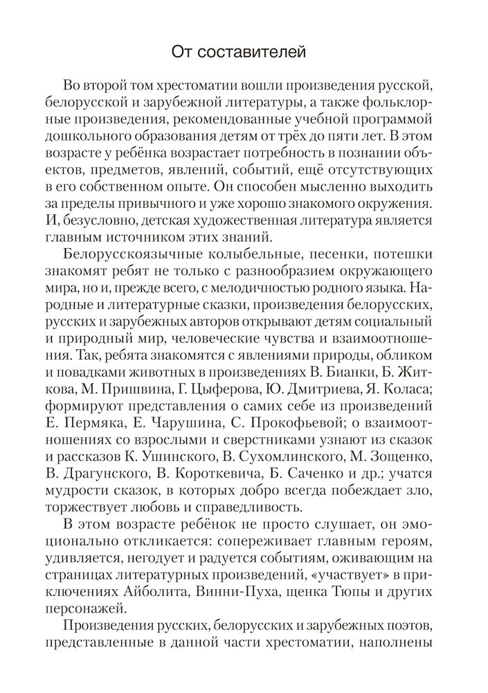 Хрестоматия включает произведения художественной литературы, рекомендованные учебной программой дошкольного образования (образовательная область «Художественная литература») для работы с детьми от 3 до 5 лет.