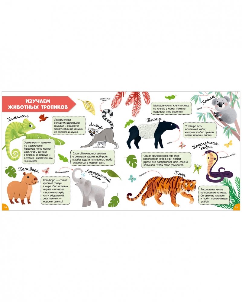 На страницах книги маленькие читатели познакомятся с питомцами и обитателями разных природных зон, узнают интересные факты о животных и выполнят веселые задания на логику и внимание. А в конце книги малышей ждет квест для закрепления знаний.