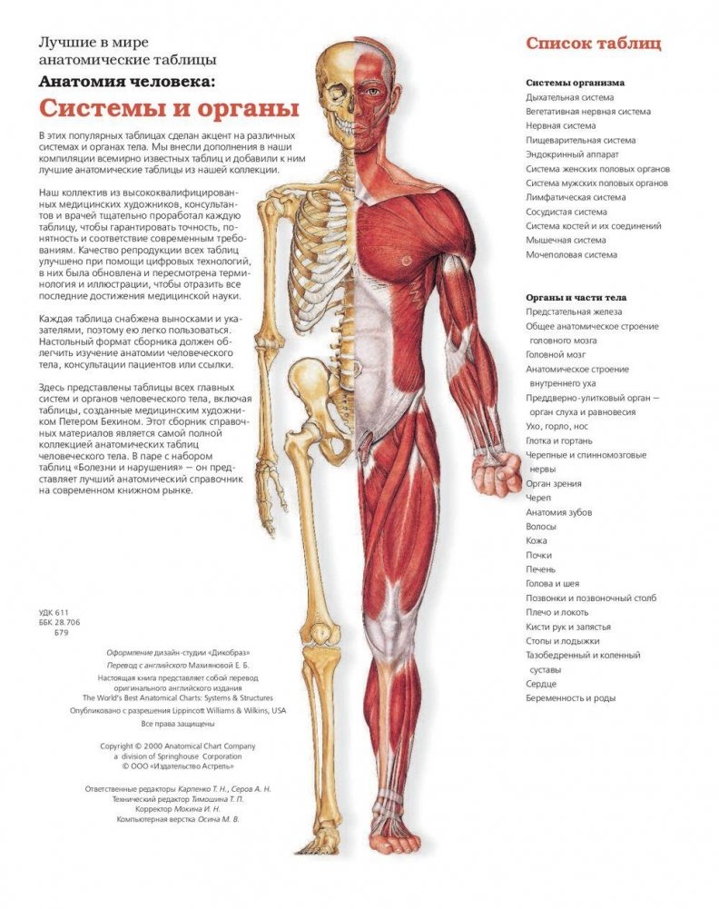 В атласе сделан акцент на различных системах и органах тела. Авторами внесены дополнения в компиляции всемирно известных таблиц и добавили к ним лучшие анатомические таблицы из своей коллекции. Коллектив из высококвалифицированных медицинских художников, консультантов и врачей тщательно проработал каждую таблицу, чтобы гарантировать точность, понятность и соответствие современным требованиям. Качество репродукции всех таблиц улучшено при помощи цифровых технологий, в них была обновлена и пересмотрена терминология и иллюстрации, чтобы отразить все последние достижения медицинской науки. Каждая таблица снабжена выносками и указателями, поэтому ею легко пользоваться. Настольный формат сборника должен облегчить изучение анатомии человеческого тела, консультации пациентов или ссылки. Здесь представлены таблицы всех главных систем и органов человеческого тела. Этот сборник справочных материалов является самой полной коллекцией анатомических таблиц человеческого тела.