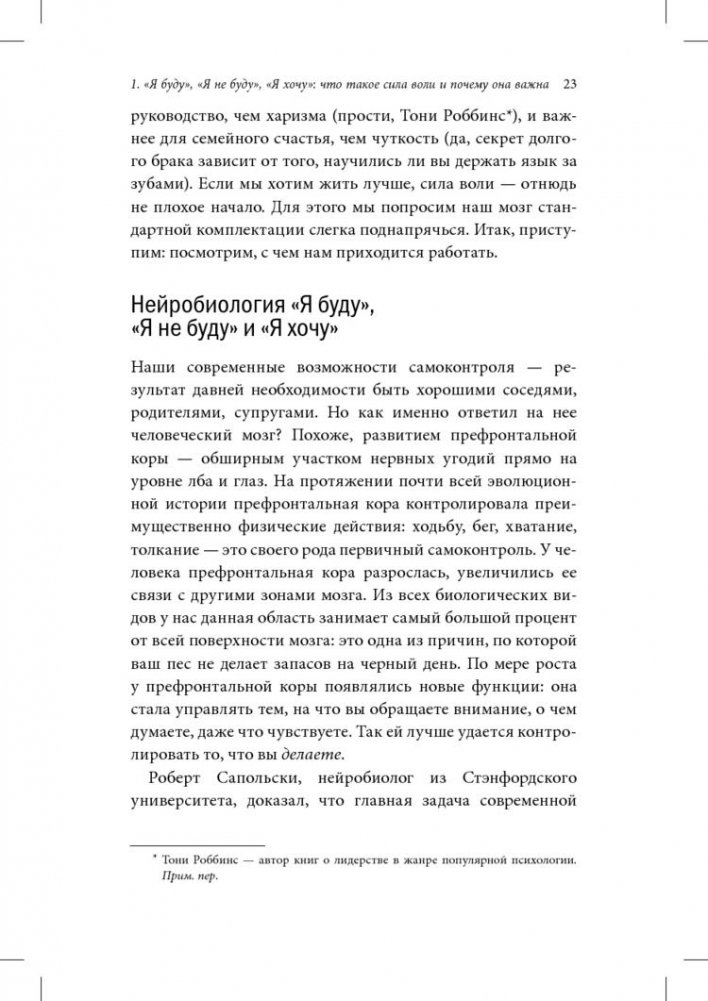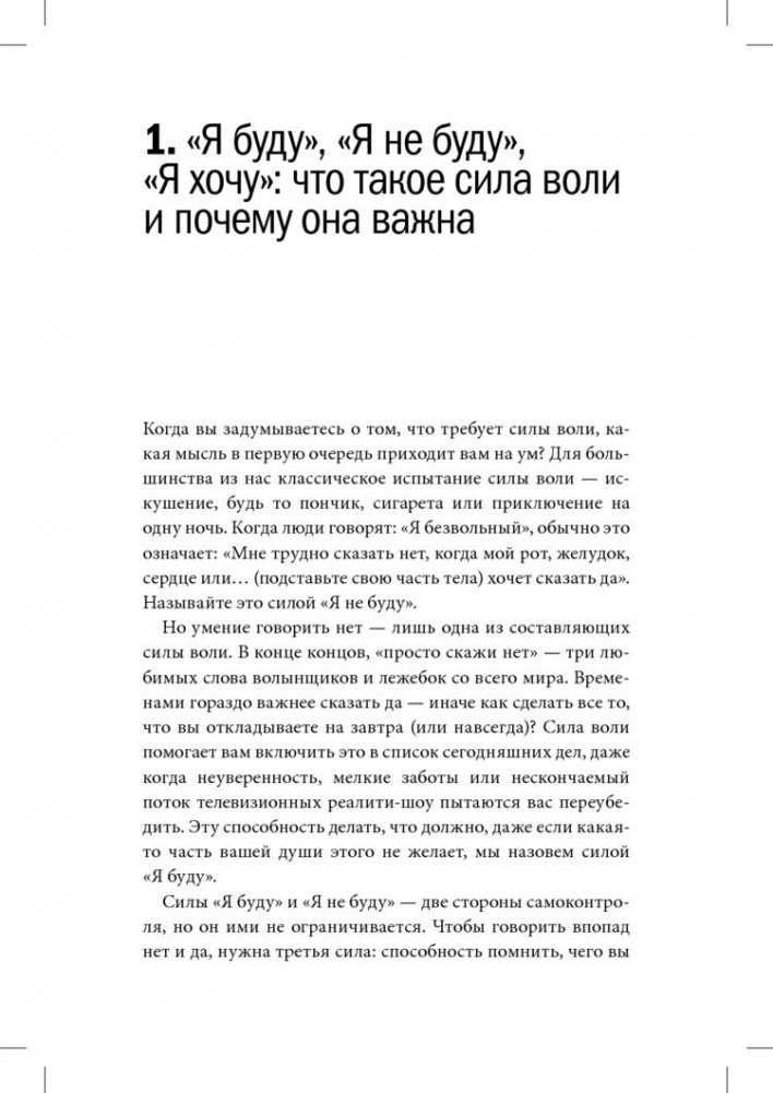 От силы воли зависят физическое здоровье, финансовое положение, отношения с окружающими и профессиональный успех — это известный факт. Но почему же нам так часто не хватает этой самой силы воли: вот мы владеем собой, а в следующий момент нас захлестывают чувства, и мы теряем контроль? Как перестать откладывать дела на последний момент? Как научиться сосредоточиваться и справляться со стрессом? Как сохранять самообладание? Как избавиться от вредных привычек? Если вы хоть раз задавали себе какой-либо из этих вопросов, то срочно берите и читайте эту книгу. Применив на практике описанные в ней методы и стратегии, вы научитесь легко управлять своим вниманием, чувствами и желаниями. И неважно, хотите вы похудеть, бросить курить, заняться спортом, перестать проверять почту каждые пять минут, открыть свой бизнес или найти новую работу.