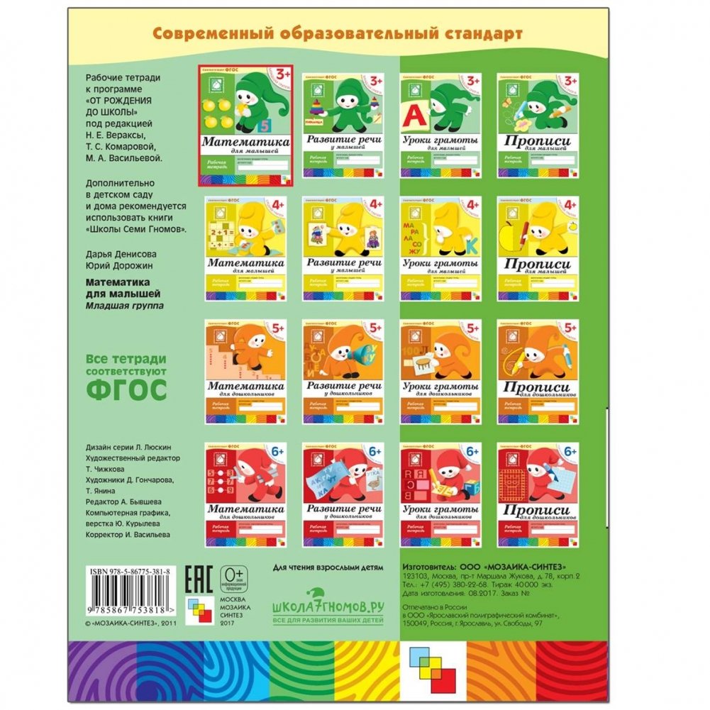 «Математика – это гимнастика ума». В справедливости этого высказывания Вы убедитесь, когда начнете заниматься с ребенком математикой. Очень важно подводить малыша к овладению математической наукой постепенно – через образы и ассоциации. Данное пособие поможет развить у ребенка элементарные математические представления. Малыш ознакомится с понятиями «ни одного», «один» и «много», научится работать с множествами. В пособии дается сравнение простейших геометрических фигур: круга, квадрата и треугольника. Программа "ОТ РОЖДЕНИЯ ДО ШКОЛЫ" опирается на лучшие традиции отечественного образования и является переработанным в соответствии с действующими ФГТ вариантом "Программы воспитания и обучения в детском саду" под редакцией М.А. Васильевой, В.В. Гербовой, Т.С. Комаровой, рекомендованной Министерством образования РФ.