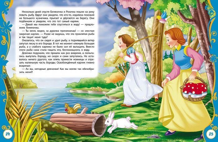В книгу вошли сказки: «Беляночка и Розочка», «Умная Гретель», «Живая вода», «Три маленьких лесовика», «Про умного портняжку», «Счастливый Ганс», «Русалка в пруду», «Заяц и Ёж», «Столик-накройся, золотой осёл и дубинка». Яркие иллюстрации на каждой странице. Крупный шрифт.