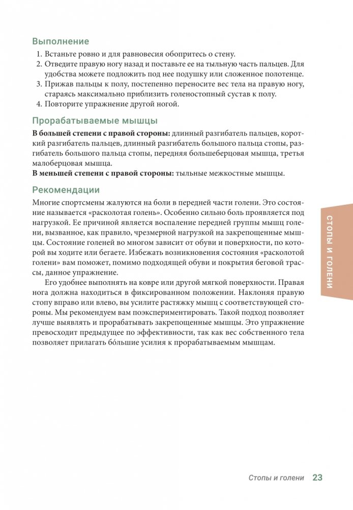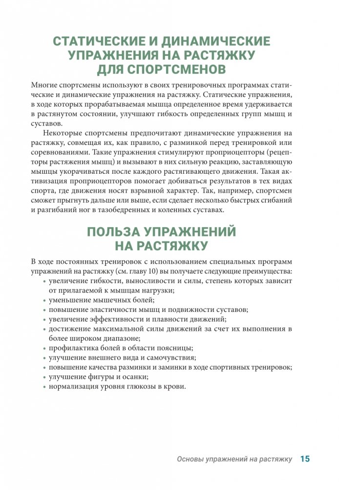 Каждое упражнение сопровождается пошаговыми инструкциями по выполнению, перечнем растягиваемых мышц и примечаниями, где в деталях описываются все преимущества данного упражнения, указания по соблюдению мер предосторожности и варианты среднего и повышенного уровней сложности. Благодаря цветным иллюстрациям вы сможете понять, как различные движения изменяют нагрузку на мышцы, и сделать свои тренировки максимально полезными и безопасными.