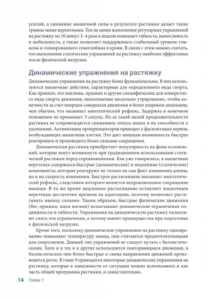 В этом руководстве вы найдете образцы тренировочных программ, предназначенных в том числе и для людей, которым приходится подолгу сидеть или стоять, а также комплекс для понижения уровня сахара в крови. Сюда включены списки упражнений на растяжку для 23 различных видов спорта, которые помогут спортсменам повысить эластичность мышц и эффективность движений, а также ускорить восстановление после тренировок и соревнований.