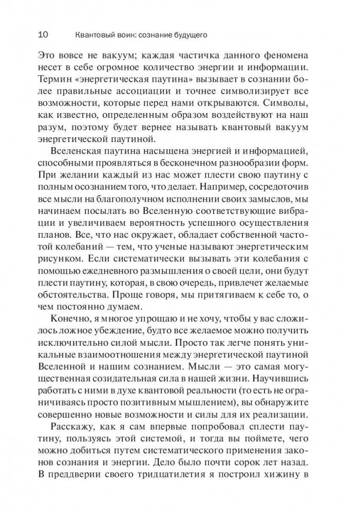 Квантовый воин - новый герой современного мира. Встать на этот путь - значит стать цельной личностью, вобрать в себя все лучшее, что может быть в человеке. Это путь чудесных открытий о самом себе и необъятной Вселенной. Это новый способ достичь успеха и стать счастливым. Книга учит тому, как применять эти революционные техники в повседневной жизни. Если вам не дают покоя тайны бытия и истинный диапазон человеческих возможностей, то в этой книге вы найдете ответы на все свои вопросы. Для широкого круга читателей.