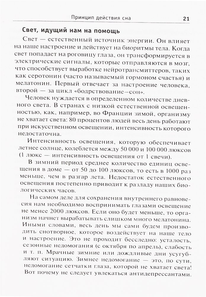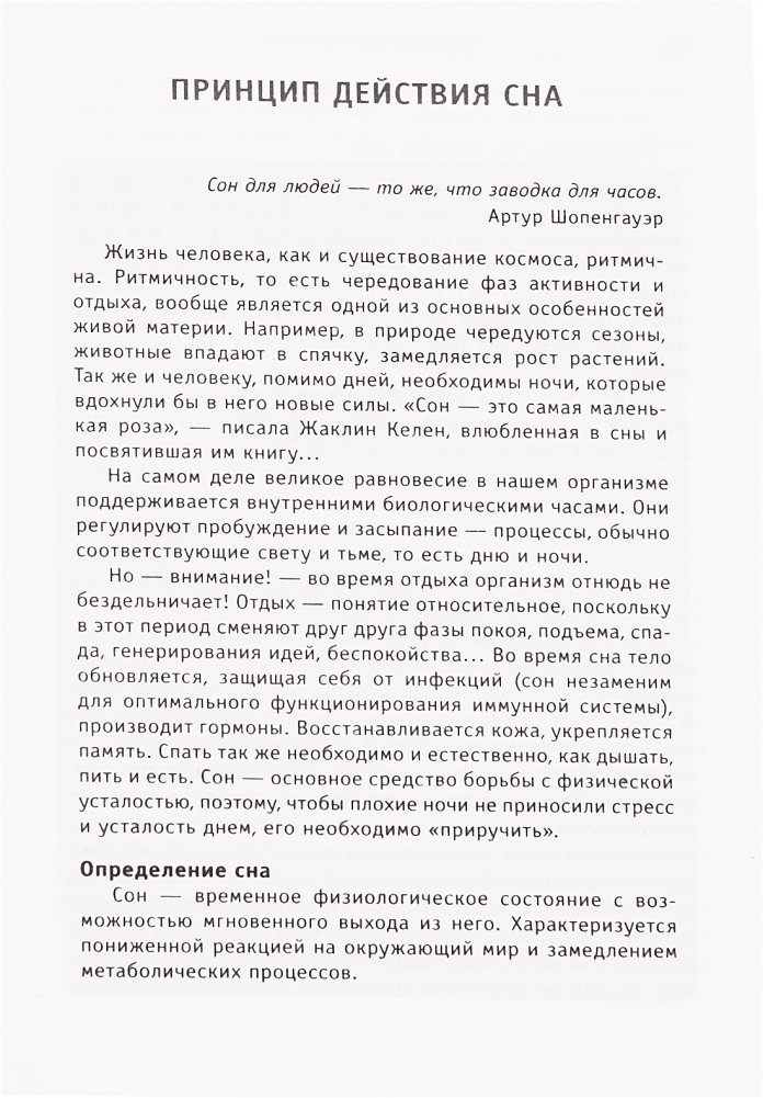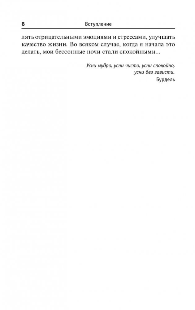 Анна Тарди делится с вами естественными приемами, которые гарантируют полноценный отдых. Вы узнаете, что подготовка к крепкому ночному сну начинается с утреннего пробуждения, откроете все его секреты - от приема пищи до выбора матраса, научитесь выполнять простые короткие упражнения, прислушаетесь к полезным советам - и вскоре бессонница канет в прошлое как дурной сон... Для широкого круга читателей.