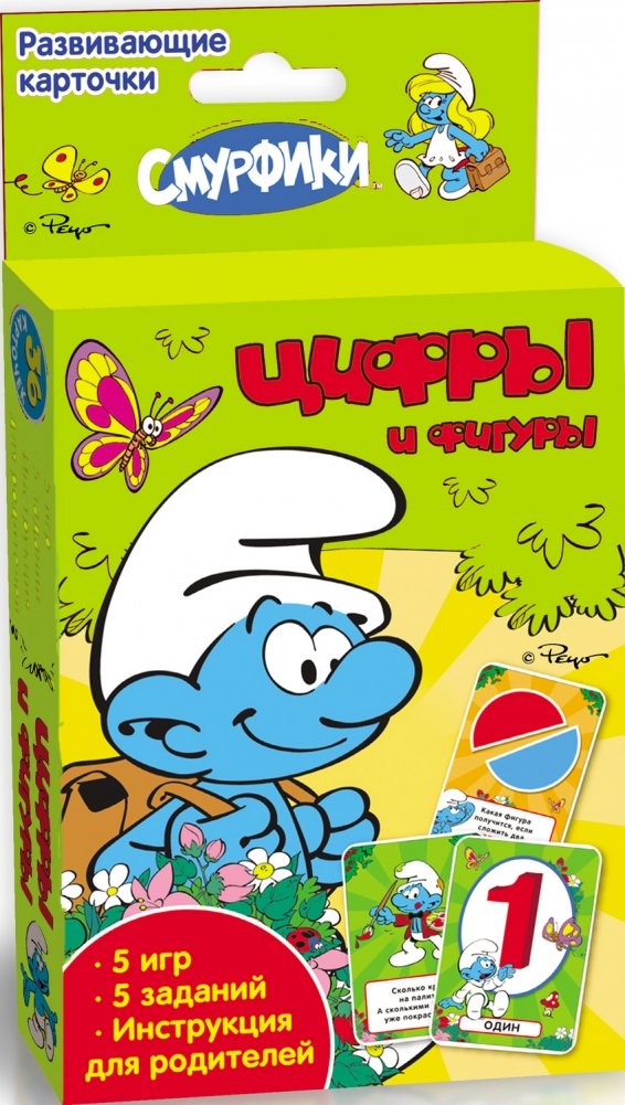Развивающие карточки "Смурфики. Цифры и фигуры"