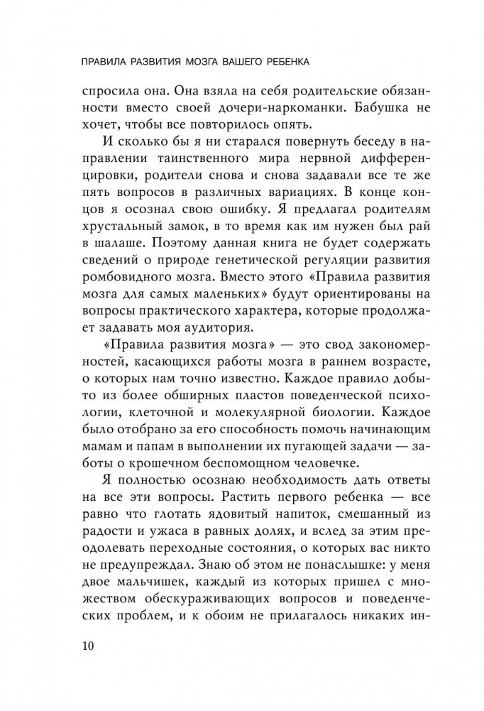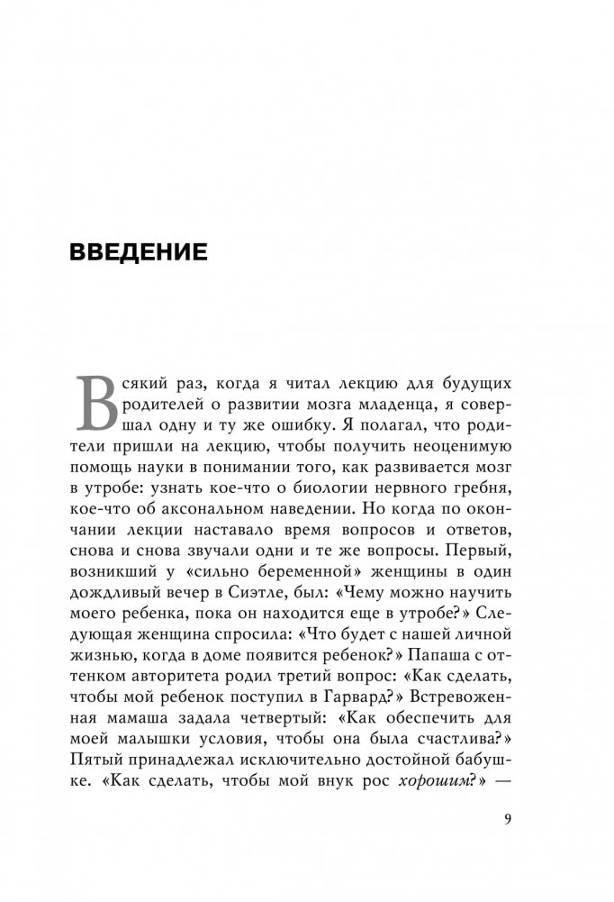 О чем эта книга: Основная идея книги: воспитание ребенка – это в первую очередь развитие его мозга, в том числе во внутриутробном периоде. Все, что нужно знать родителям, чтобы вырастить умного, успешного и счастливого ребенка, в том числе: - почему будущим мамам желательно чаще делать педикюр; - почему по время беременности не обязательно слушать классику; - почему ребенок не наследуют все способности и особенности родителей; - почему полезные для мозга игрушки нередко бывают бесполезны; - почему в определенном возрасте для мозга так опасен телевизор; - почему об уровне интеллекта ребенка не следует судить по тестам; - почему у счастливых супругов растут счастливые и умные дети. Фишки книги: - Рекомендации автора основаны на новейших достижениях науки в области развития мозга до рождения и в первые пять лет жизни. - Все изложено простым и доступным языком, будет интересно даже людям, далеким от науки. Для кого эта книга: Для родителей детей от 0 до 5 лет и всех, кто когда-либо планирует рождение ребенка.