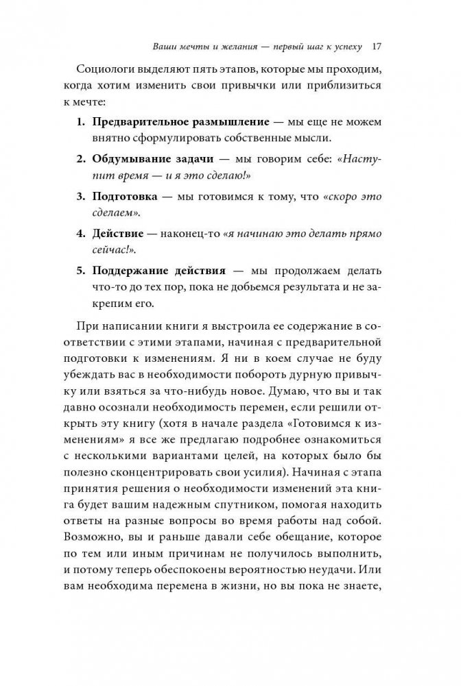 Книга рассказывает о том, как перестать строить воздушные замки, откладывать дела на потом и научиться исполнять свои желания. Эта книга будет полезна всем, кто хочет изменить свои привычки, начать выполнять данные себе обещания и добиться перемен к лучшему в жизни.