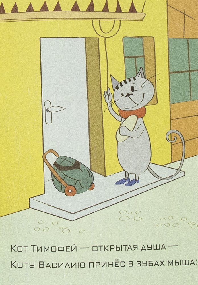 Орел, что в облаках над прочими парил И в силу этого от жизни оторвался, По прихоти жены с Сорокою общался, Ей лично лапку жал и с нею говорил. Кот Тимофей - открытая душа Коту Василию принес в зубах мыша…