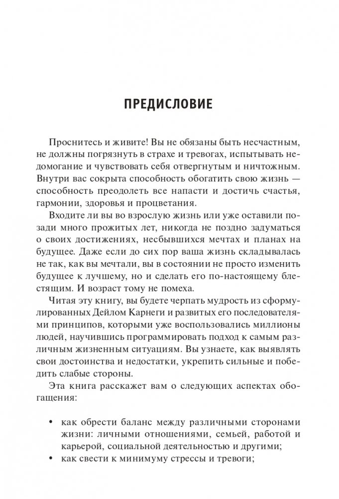 Читая эту книгу, вы будете черпать мудрость из принципов, сформулированных Дейлом Карнеги много лет назад. Ими уже воспользовались миллионы людей, которые научились программировать подход к самым различным жизненным ситуациям. Вы узнаете, как определить свои достоинства и недостатки, укрепить сильные и победить слабые стороны.
