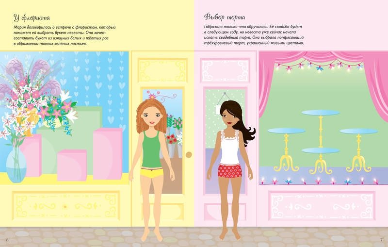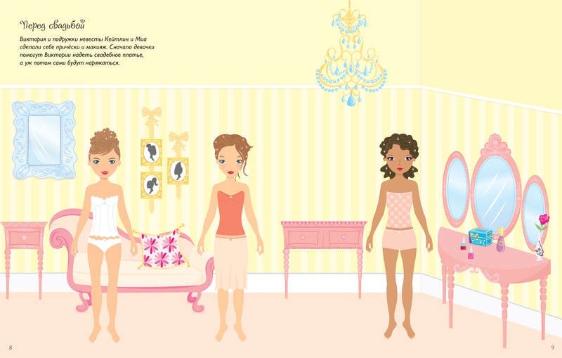 Почувствуй себя участницей волшебных свадебных приключений! Наряди невест, их подружек, женихов и гостей с помощью ярких наклеек. Читаем и играем! Развиваем внимание, воображение, мелкую моторику и художественный вкус.