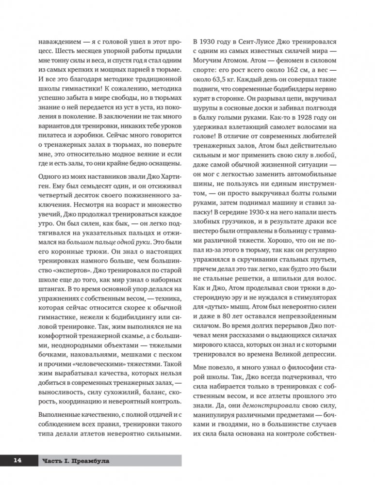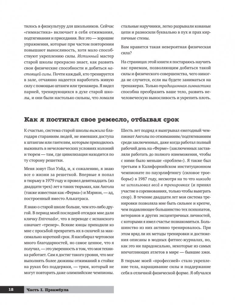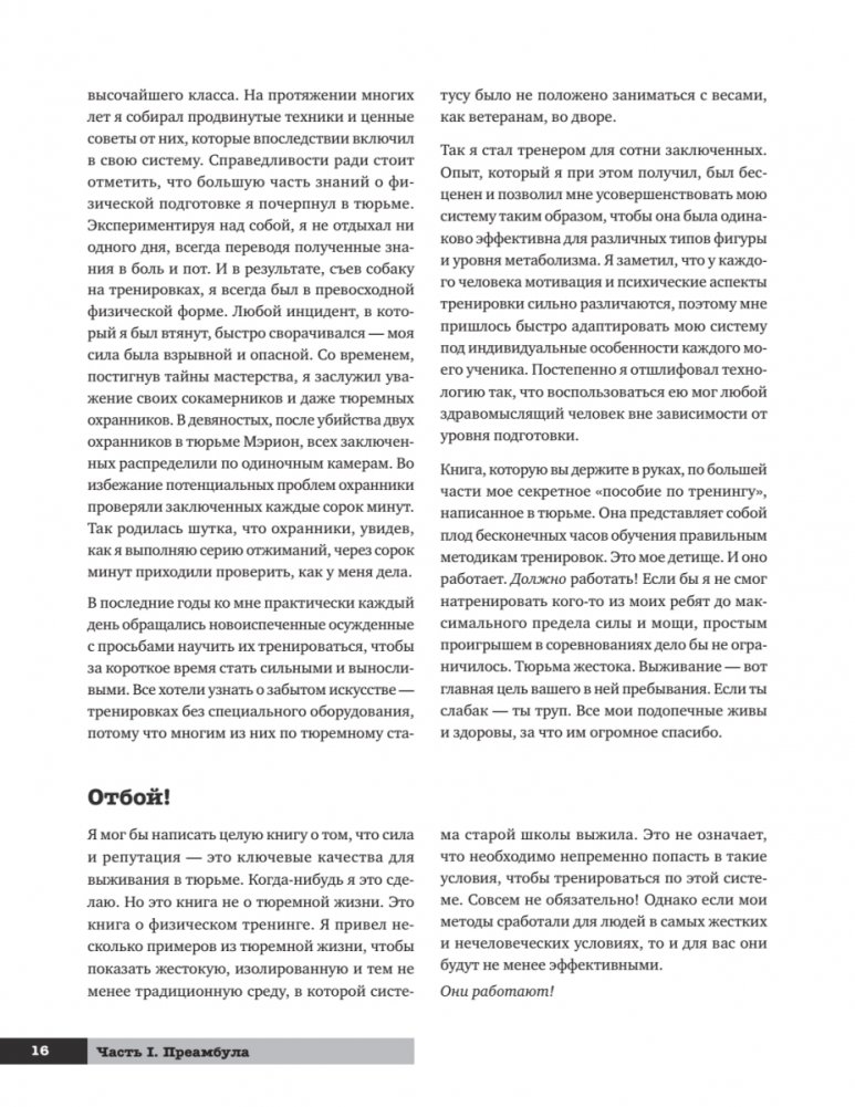 О чем эта книга? О свободе. О выживании. О человечности. Она написана бывшим заключенным, человеком, лишившимся свободы на более чем двадцать лет. Человеком, который побывал в жерновах самых суровых тюрем Америки. Человеком, вынужденным обратиться к силе, чтобы выжить. Человеком, лишенным всего, кроме своего тела и души, — и решившим несмотря ни на что развиваться и обрести свою личную свободу, которую никто не мог у него отнять. Свободу сильного тела и крепкого духа.