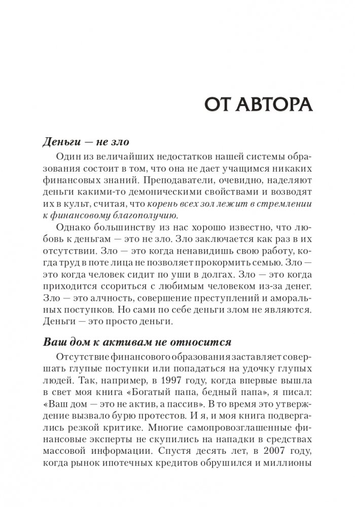В этой книге автор "Богатого папы" рассказывает о своих успехах и, что еще важнее, о неудачах в области бизнеса, а также об уроках, которые он из них извлек. Советы Кийосаки помогут вам сделать первый шаг на пути к тому, чтобы стать процветающим предпринимателем.