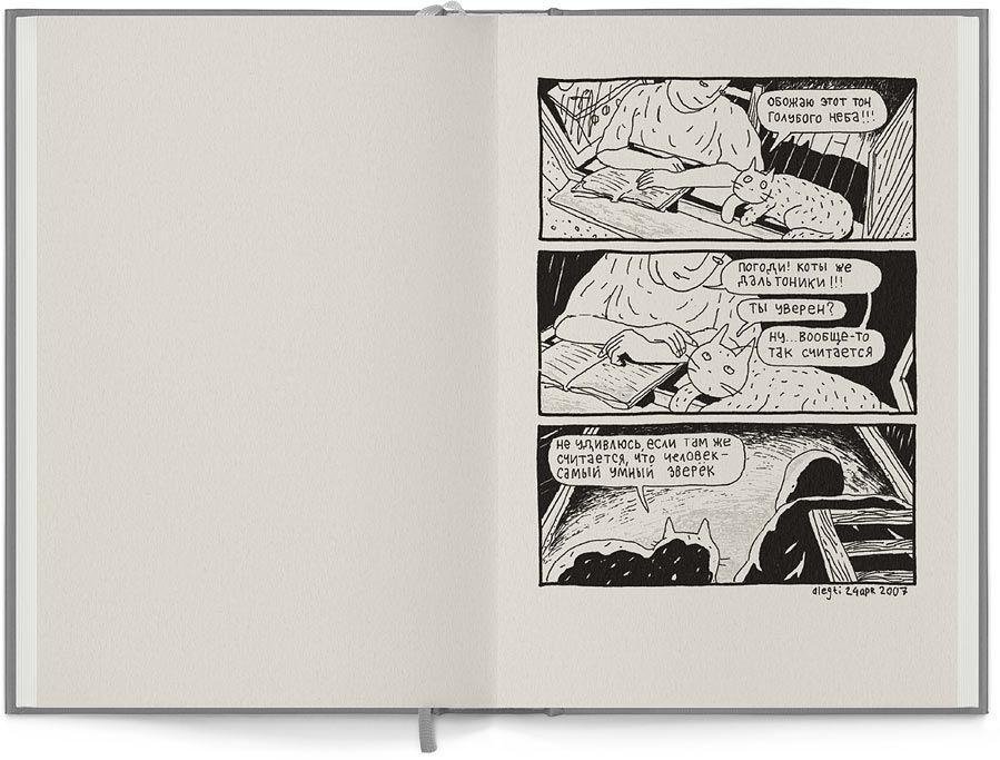 Эта книга — очередной сборник маленьких рисованных историй о человеке и коте. Хорошо знакомые читателям художник и его домашний любимец ведут беседы, которые оформлены в легкомысленном жанре комикса. Эти незатейливые и не связанные общей сюжетной линией диалоги чаще вызывают улыбку, но иногда заставляют читателя всерьез задуматься о простых и важных вещах: о любви, дружбе, счастье, одиночестве, жизни, времени и мечте. Во второе издание добавлены монокомиксы — глубокомысленные монологи мохнатого умника.