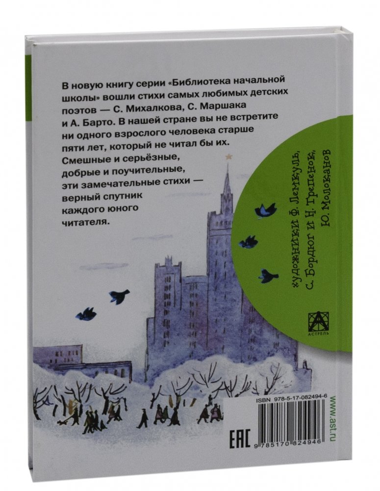 В новую книгу серии «Библиотека начальной школы» вошли стихи самых любимых детских поэтов — С. Михалкова, С. Маршака и А. Барто. В нашей стране вы не встретите ни одного взрослого человека старше пяти лет, который не читал бы их. Смешные и серьёзные, добрые и поучительные, эти замечательные стихи — верный спутник каждого юного читателя.