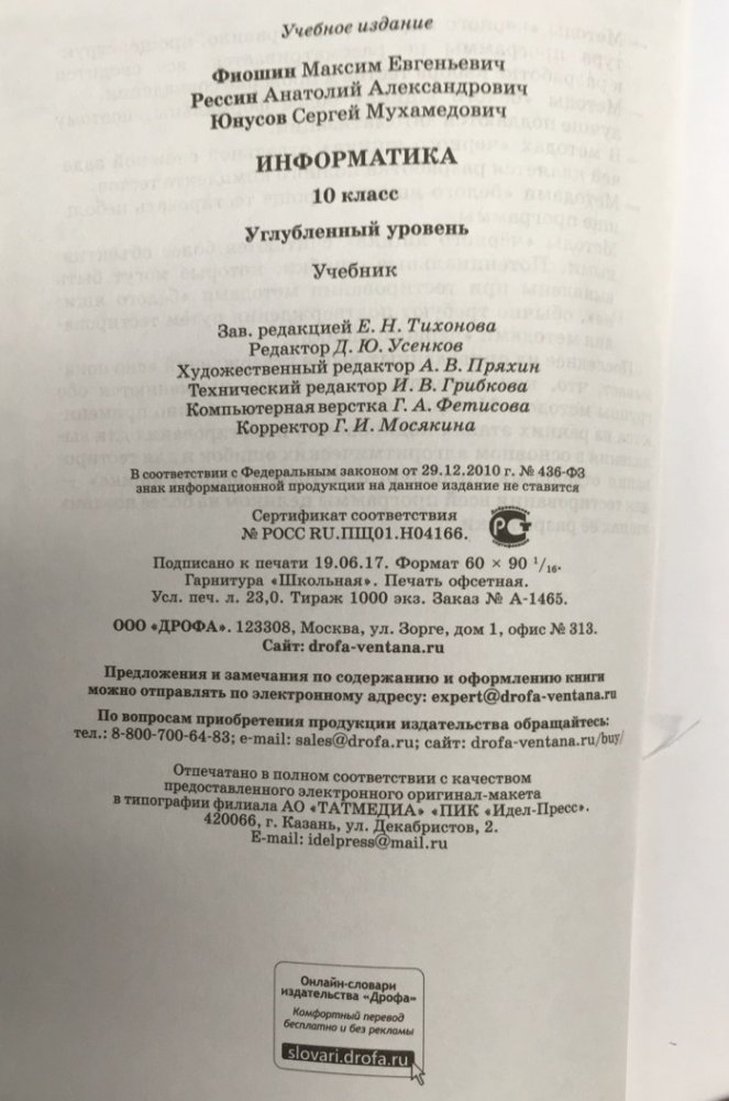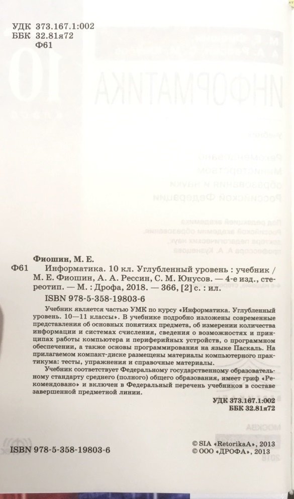 Информатика. 10 класс. Углублённый уровень. Учебник. Вертикаль. ФГОС (+ CD-ROM)