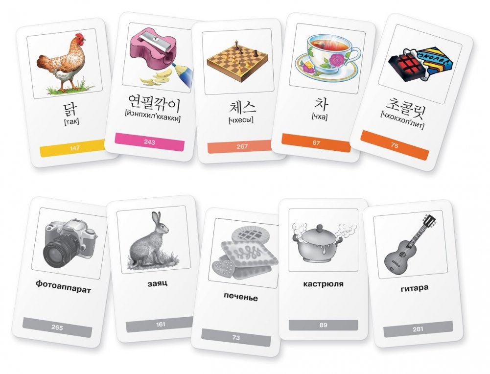 С помощью карточек можно быстро и легко запомнить корейские слова. Посмотрите на цветную сторону карточки. Транскрипция поможет вам правильно прочитать корейское слово, а картинка подскажет его значение. Обратите внимание, что звуки ?, ?, j (?) читаются как в английском языке. Поверните карточку обратной стороной и убедитесь в правильности своей догадки. Постарайтесь запомнить произношение слова и его перевод. С помощью этих карточек вы быстро овладеете наиболее часто встречающимися корейскими словами. Кроме того, вы можете записывать дополнительные слова на имеющиеся в комплекте пустые карточки.