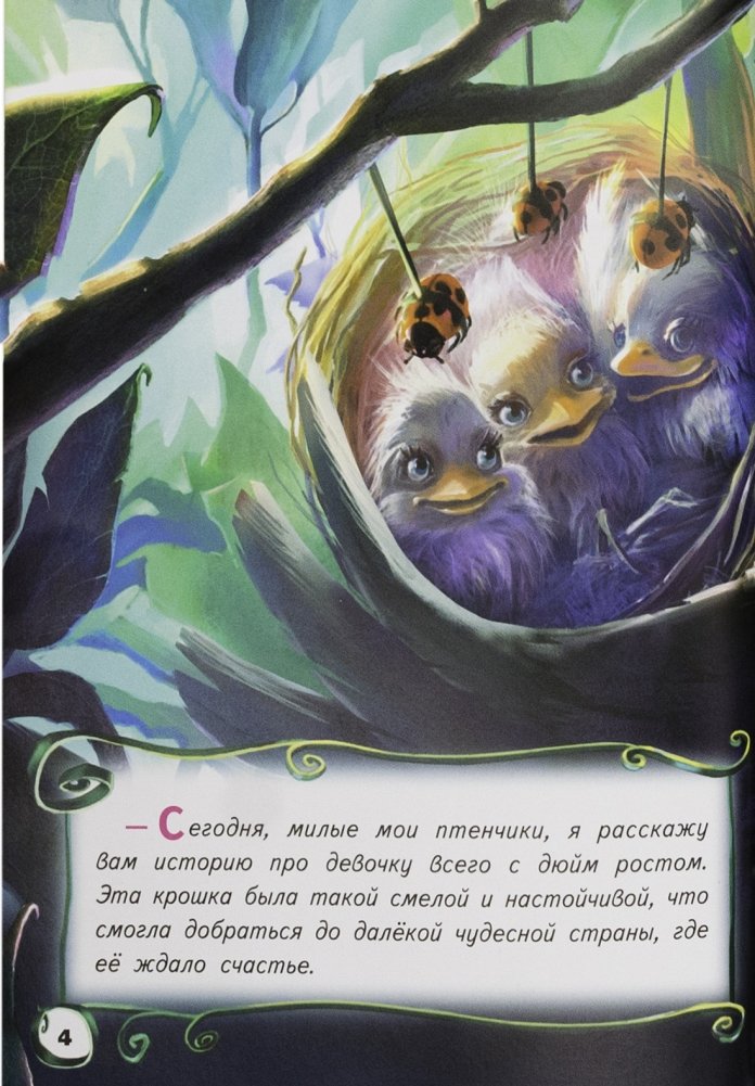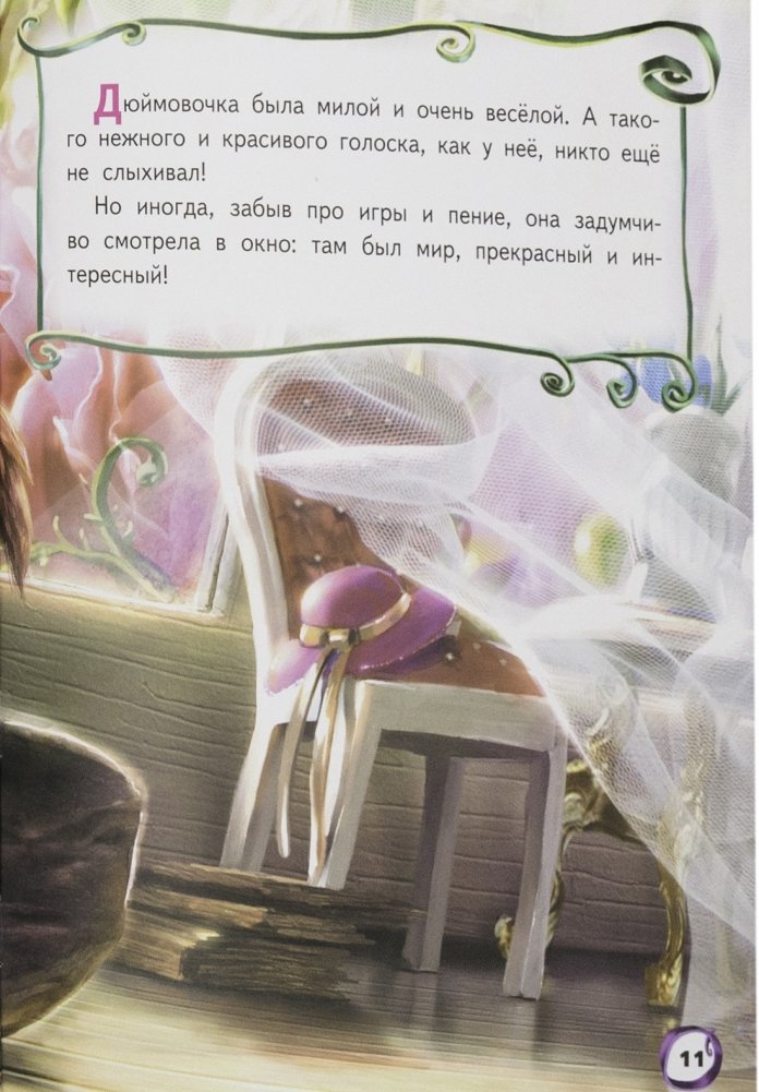 Сказка, ставшая классикой детской литературы: приключения маленькой девочки, родившейся в чашечке цветка и, после множества приключений, нашедшей своё счастье в волшебной стране.