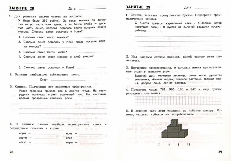 Комбинированные летние задания за курс 3 класса. 50 занятий по русскому языку и математике. ФГОС