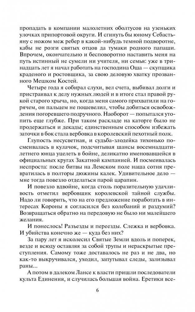 Прошлое не отпускает. Если полжизни резал глотки во имя интересов Короны, от него не укрыться, какую личину ни нацепи. Себастьян Март теперь известен как Себастьян Шило, один из заправил преступного сообщества Акраи. Но проблемы, как и прежде, ходят за ним по пятам, а невинные просьбы старинного приятеля иной раз чреваты куда более серьезными неприятностями, чем самые опрометчивые приказы главы тайной службы. На этот раз все началось с таинственного ограбления королевского казначейства.