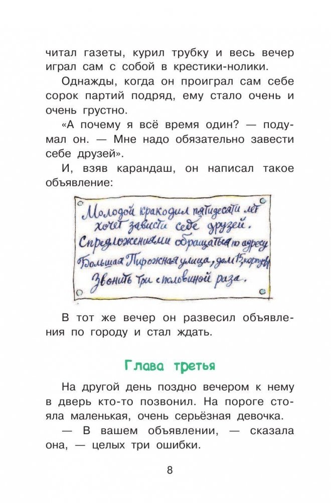 В новой книге серии «Библиотека начальной школы» юные читатели найдут замечательную сказочную повесть Э. Успенского о том, как очень одинокий крокодил по имени Гена нашел настоящих друзей. Среди них Чебурашка — непонятный зверек из Африки, который приплыл на корабле в ящике с апельсинами, девочка Галя, собачка Тобик, лев Чандр и многие другие. И все бы хорошо, но вредная старуха Шапокляк со своей дрессированной крысой Лариской подстраивает им разные пакости. Чем же закончатся приключения?