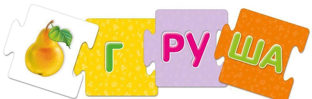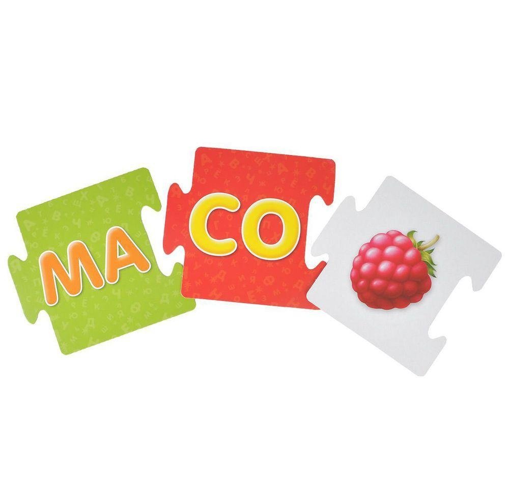 Слоговая система обучения чтению ребенка, развивающие карточки и пазлы. «Учимся читать по слогам» - это обучающая и развивающая игра, с помощью которой ваш ребенок научится читать и складывать слова самостоятельно. Игра с карточками рассчитана на детей, которые уже знают алфавит и имеют минимальные навыки чтения по слогам. В наборе вы найдете 40 двусторонних карточек. С одной стороны приводится картинка-слово, с другой – какой-либо слог. Ребенок называет картинку-слово, а потом ищет среди карточек-слогов необходимые слоги, чтобы составить слово, изображенное на картинке. Пока ребенок ищет необходимые слоги, он произносит вслух слоги и на других карточках, таким образом запоминая дополнительные буквы и слоги. Когда все слоги найдены, попросите малыша прочитать слово целиком. Картинки-задания приводятся по принципу от простого к сложному, начиная от простых односложных слов (например, слово «мак»), заканчивая многосложными трудными словами (например, «незабудка», «виноград», «черепаха»). Все карточки сделаны из толстого картона в форме пазлов и подходят друг к другу. Слоги и отдельные буквы приводятся на ярком фоне, а иллюстрации даются на белом, так чтобы не отвлекать внимание ребенка.