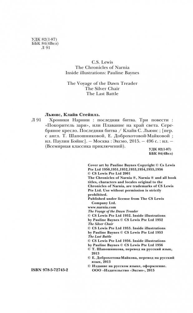 Приключения детей в удивительной стране Нарнии, где правит чудесный лев Аслан, грозный и в то же время бесконечно добрый. Иллюстрации отлично гармонируют с текстом. Они выполнены великолепным графиком Паулин Дианой Бэйнс – общепризнанным «художником Нарнии». Новая серия, собравшая все лучшие приключения от классиков мировой литературы. Приключения в жизни начинаются с книг о приключениях! Всего более 20 томов в серии. Приключения, которые сопровождают вас всю жизнь!