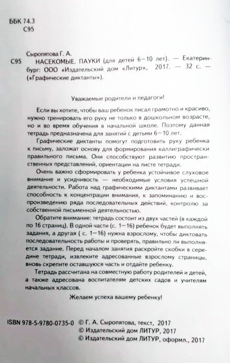 Графические диктанты. Насекомые. Пауки. Рабочая тетрадь