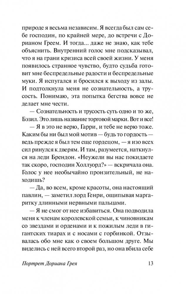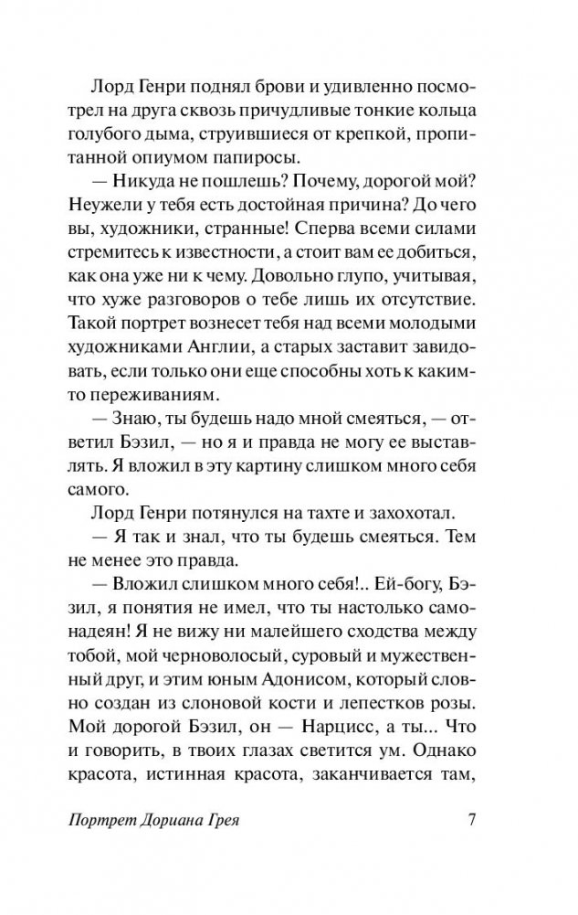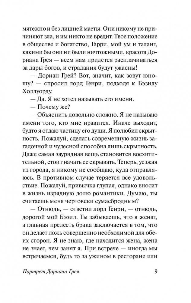 "Портрет Дориана Грея" — самое знаменитое произведение Оскара Уайльда, единственный его роман, вызвавший в свое время шквал негативных оценок и тем не менее имевший невероятный успех. Главный герой романа, красавец Дориан, — фигура двойственная, неоднозначная. Тонкий эстет и романтик становится безжалостным преступником. Попытка сохранить свою необычайную красоту и молодость оборачивается провалом. Вместо героя стареет его портрет — но это не может продолжаться вечно, и смерть Дориана расставляет все по своим местам. Роман Оскара Уайльда продолжает быть очень актуальным и сегодня — разве погоня за вечной молодостью порой не оборачивается потерей своего истинного лица?