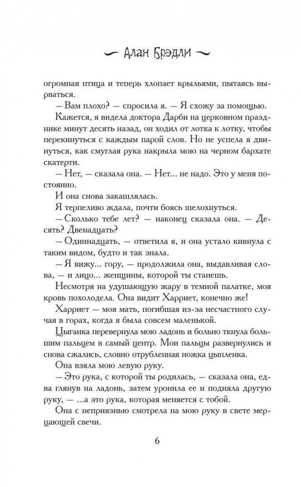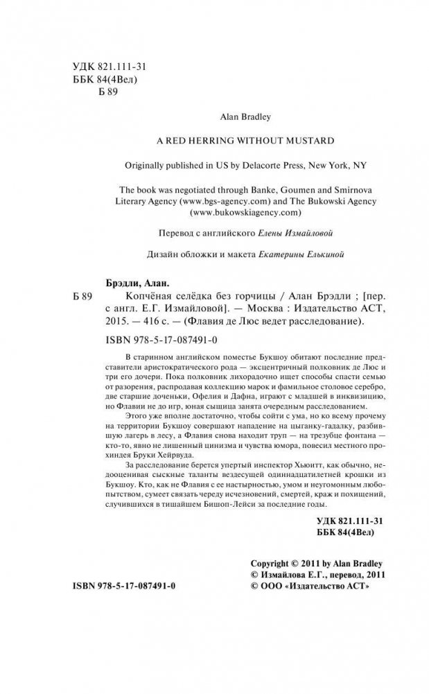 В старинном английском поместье Букшоу обитают последние представители аристократического рода - эксцентричный полковник де Люс и три его дочери. Пока полковник лихорадочно ищет способы спасти семью от разорения, распродавая коллекцию марок и фамильное столовое серебро, две старшие доченьки, Офелия и Дафна, играют с младшей в инквизицию, но Флавии не до игр, юная сыщица занята очередным расследованием. Этого уже вполне достаточно, чтобы сойти с ума, но ко всему прочему на территории Букшоу совершают нападение на цыганку-гадалку, разбившую лагерь в лесу, а Флавия снова находит труп - на трезубце фонтана - кто-то, явно не лишенный цинизма и чувства юмора, повесил местного прохиндея Бруки Хейрвуда. За расследование берется упертый инспектор Хьюитт, как обычно, недооценивая сыскные таланты вездесущей одиннадцатилетней крошки из Букшоу. Кто как не Флавия с ее настырностью, умом и неугомонным любопытством сумеет связать череду исчезновений, смертей, краж и похищений, случившихся в тишайшем Бишоп-Лейси за последние годы.