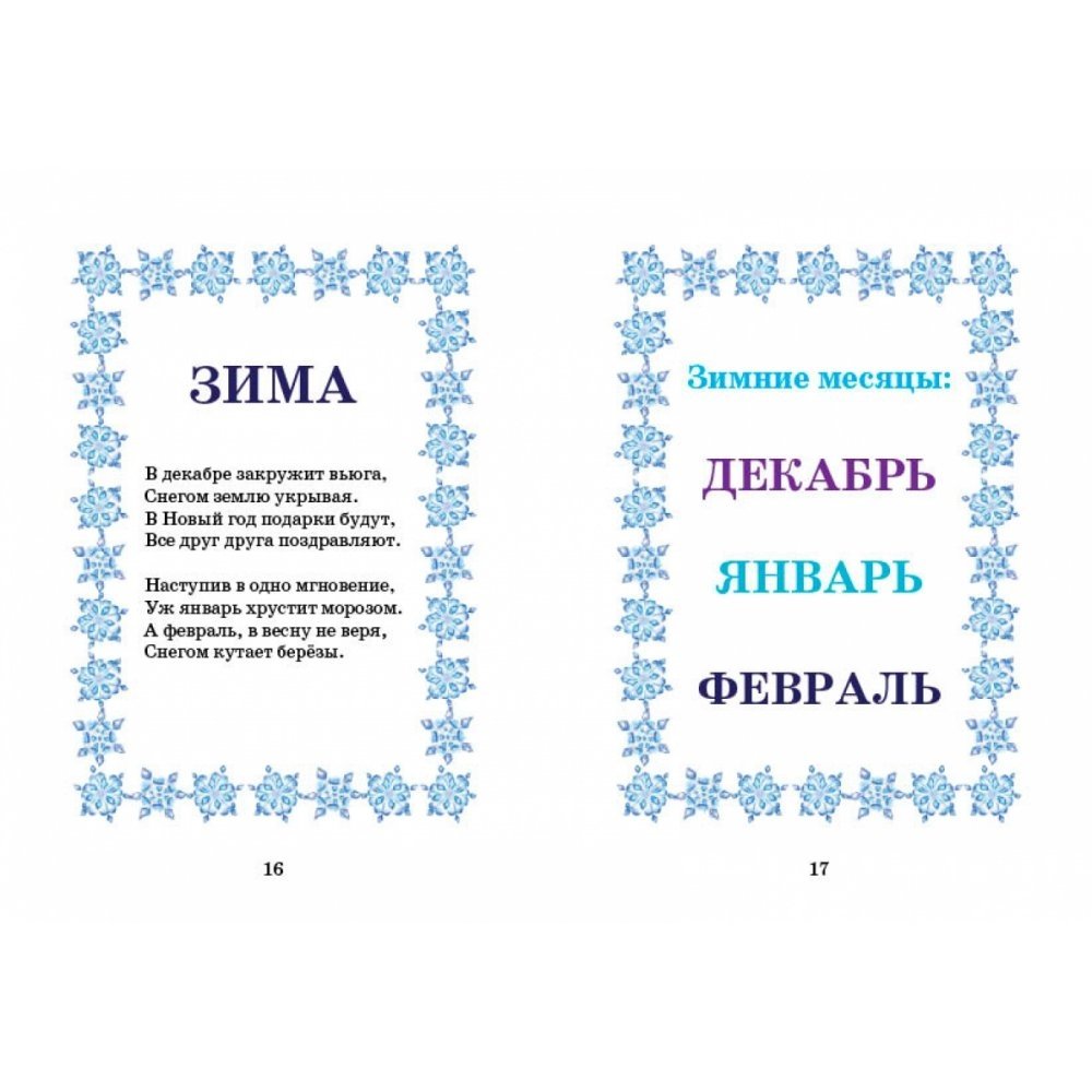 С помощью добрых стихов и красивых картинок дети познакомятся со всеми временами года, узнают, что можно делать в разные сезоны, выполнят несложные задания и выучат названия двенадцати месяцев.