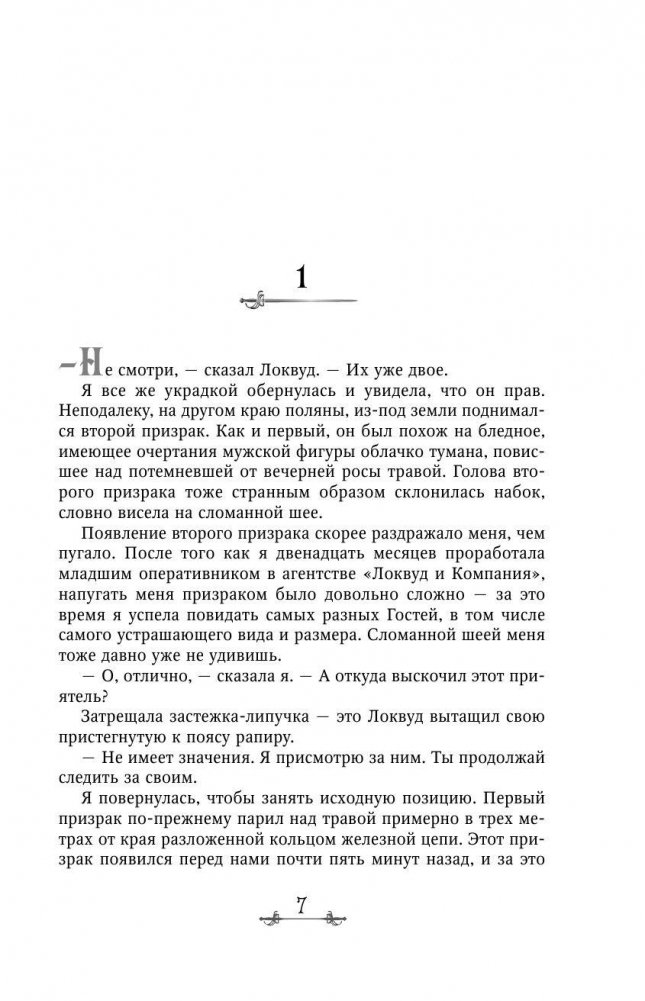 Меня зовут Люси Карлайл и я работаю в агентстве "Локвуд и компания". Нас всего трое: я, Энтони (он же Локвуд) и Джордж. Мы занимаемся тем, что ловим призраков и спасаем от них Лондон. Вообще-то, это только звучит просто, на самом деле все гораздо сложнее. Существует великое множество призраков и их разновидностей, и большинство из них смертельно опасны, и даже наше супероружие: рапиры, железные цепи и банки с греческим огнем - не всегда эффективно. Впрочем, в нашем агентстве трусов нет. Кажется, наши задания раз от раза становятся сложнее. В одной из могил, которую нам пришлось вскрыть, было обнаружено древнее костяное зеркало, обладающее чудовищной силой. Все, кто когда либо в него смотрел, умирали в страшных мучениях. Поговаривают, что его создал свихнувшийся некромант из самых настоящих человеческих костей. Бр-р-р! Лучше даже не думать об этом. Теперь мне, Локвуду и Джорджу предстоит не только разобраться с этой смертельной загадкой, но и устоять перед искушением самим заглянуть в страшное зеркало, которое, кажется, обладает собственной волей. Короче говоря, очередное дело для чокнутых агентов!