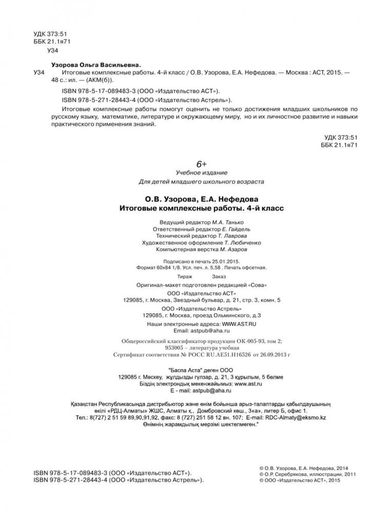 Итоговые комплексные работы. 4 класс. Русский язык. Окружающий мир. Литература. Математика. ФГОС