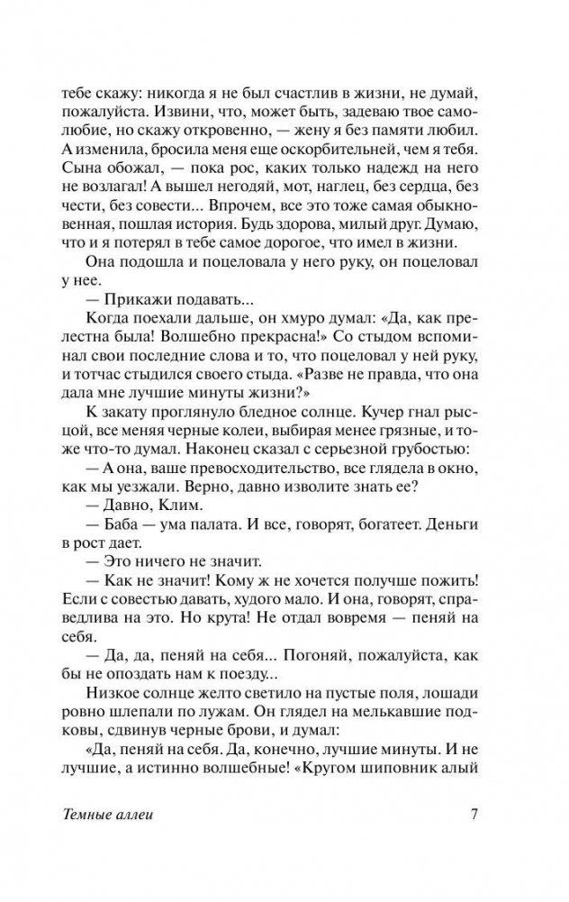 "Темные аллеи" (1937-1945) — самая известная книга Бунина, состоящая из рассказов о любви, этот сборник сам писатель считал своим лучшим творением. Наверное, никто ни до, ни после Бунина не создал в литературе такой яркой, живой и разнообразной "энциклопедии любви". Для Бунина любовь — как солнечный удар. Испытать это чувство хотя бы раз в жизни дано не каждому, это и великое счастье, и дорогое сердцу воспоминание, а порой и страшная трагедия, оборачивающаяся смертью. Каждая из новелл, составляющих этот сборник, — отдельная история любви. Самые известные рассказы "Темных аллей" — "Генрих", "Чистый понедельник", "Натали", "В Париже", но, без сомнения, вы, читая эту вдохновенную, увлекательную книгу, сами выберете ту историю, которая наиболее созвучная вашему сердцу.