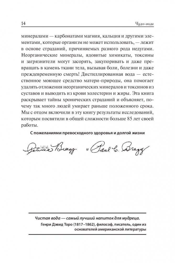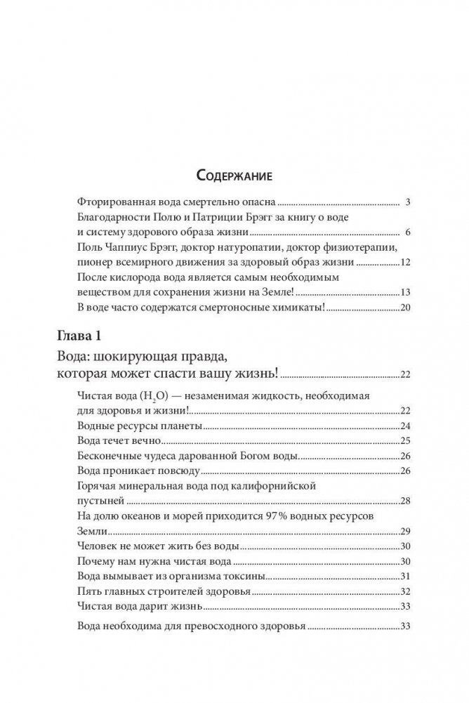 Что эта поразительная книга способна сделать для вас? Она может подарить вам здоровье и молодость! Когда вы изучите и осмыслите изложенные здесь факты, сумеете подобрать самую лучшую для своего здоровья воду и в дальнейшем будете употреблять только ее, в вашем организме начнут происходить настоящие чудеса. Гуру оздоровления Поль Брэгг искренне верил, что сумел открыть самый важный секрет здоровья! Посвятив больше 80 лет исследованиям, он обнаружил одну из главных причин болезней, старения и преждевременной смерти. В своей книге он и его дочь Патриция знакомят вас с удивительным открытием и предлагают практические советы, которые помогут вам вернуться к здоровой, полноценной жизни.