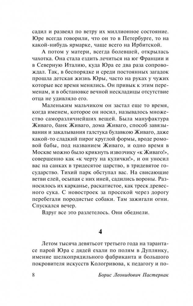 "Доктор Живаго" — книга, которую называют одним из самых значительных произведений русской литературы XX века. Через трагическую историю жизни главного героя, попавшего в чудовищный круговорот исторических событий — революцию, Гражданскую войну, — показана жизнь как таковая, ее глубинные потайные механизмы, ее загадочная суть, ее взлеты и падения.