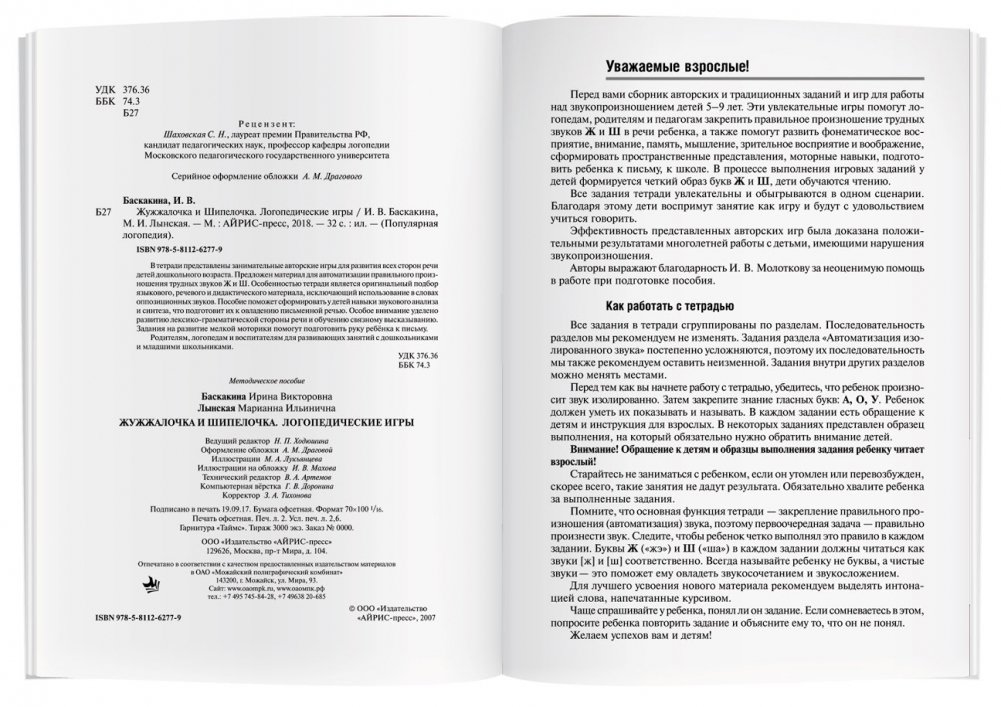 В тетради представлены занимательные авторские игры для развития всех сторон речи детей дошкольного возраста. Предложен материал для автоматизации правильного произношения трудных звуков Ж и Ш. Особенностью тетради является оригинальный подбор языкового, речевого и дидактического материала, исключающий использование в словах оппозиционных звуков. Пособие поможет сформировать у детей навыки звукового анализа и синтеза, что подготовит их к овладению письменной речью. Особое внимание уделено развитию лексико-грамматической стороны речи и обучению связному высказыванию. Задания на развитие мелкой моторики помогут подготовить руку ребенка к письму. Родителям, логопедам и воспитателям для развивающих занятий с дошкольниками и младшими школьниками.