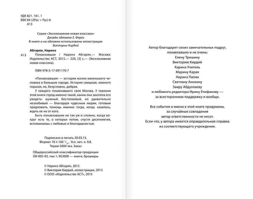 «Понаехавшая» — история жизни маленького человека в большом городе. История смешная, немного горькая, но, безусловно, добрая. У каждого понаехавшего своя Москва. У героини этой книги город именно такой, каким она захотела его увидеть: шумный, бестолковый, но удивительно незлобивый — благодаря чудесным людям, готовым предложить помощь именно тогда, когда, казалось, ждать ее не от кого. Быть понаехавшим не так уж и сложно, когда вокруг есть те, о которых потом, спустя десятилетия, вспоминаешь с любовью и благодарностью.