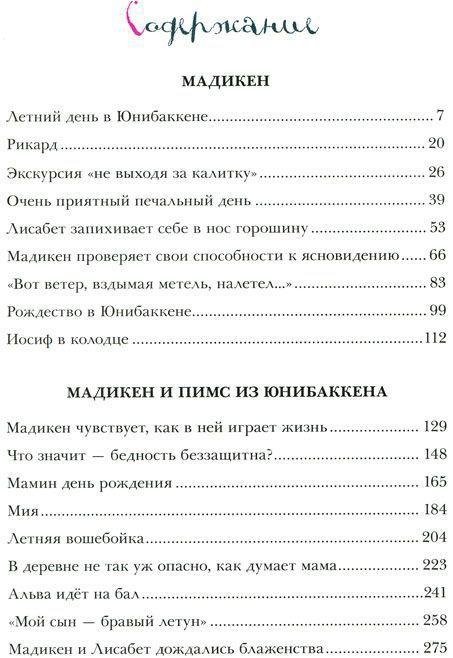 Мадикен живёт в большом красном доме возле речки. Лучшего места, чем это, на всём свете не сыскать, считает она. Ещё там живут мама и папа, помощница Альва и малышка Пимс, которая везде и всюду следует за своей старшей сестрой. Куда одна, туда и другая. Вместе им всегда весело. Да и как может быть иначе! Ведь здесь столько всего интересного: можно купаться, качаться на качелях, играть в крокет, поливать огород и поить молоком ёжика!