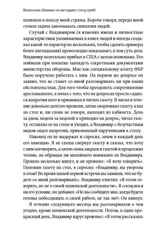 Эта книга – пособие по общению с людьми и влиянию на них от бывшего агента ФБР Джека Шафера, специализировавшегося на поведенческом анализе, обучении и найме агентов. В ней он рассматривает все необходимые методики, позволяющие вам приобретать друзей и производить хорошее впечатление — на клиентов и потенциальных покупателей, на потенциального работодателя во время собеседования, на представителей противоположного пола на свидании. Эти стратегии работали и работают на спецслужбы — значит, они сработают и в мирных условиях.