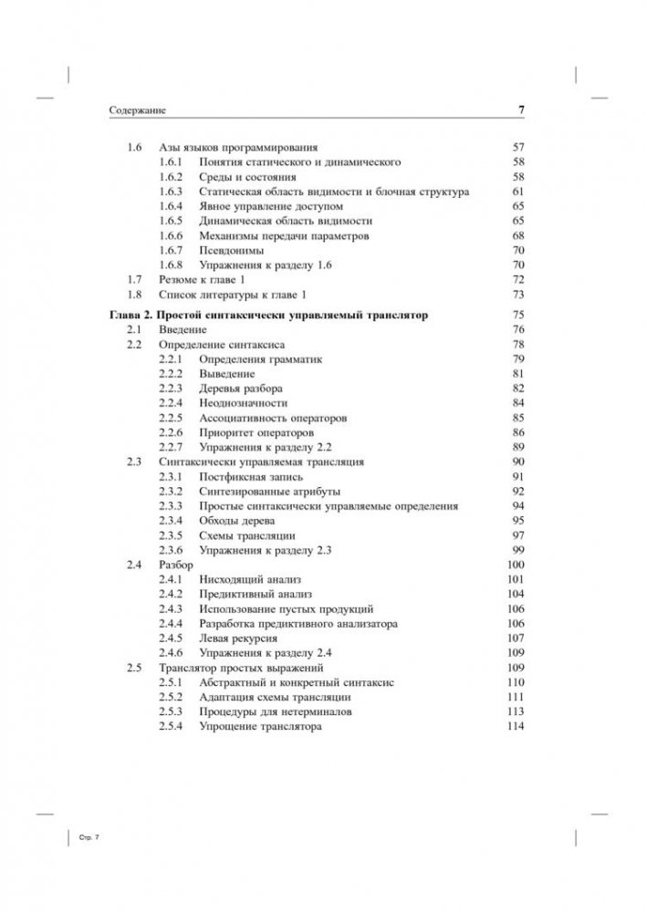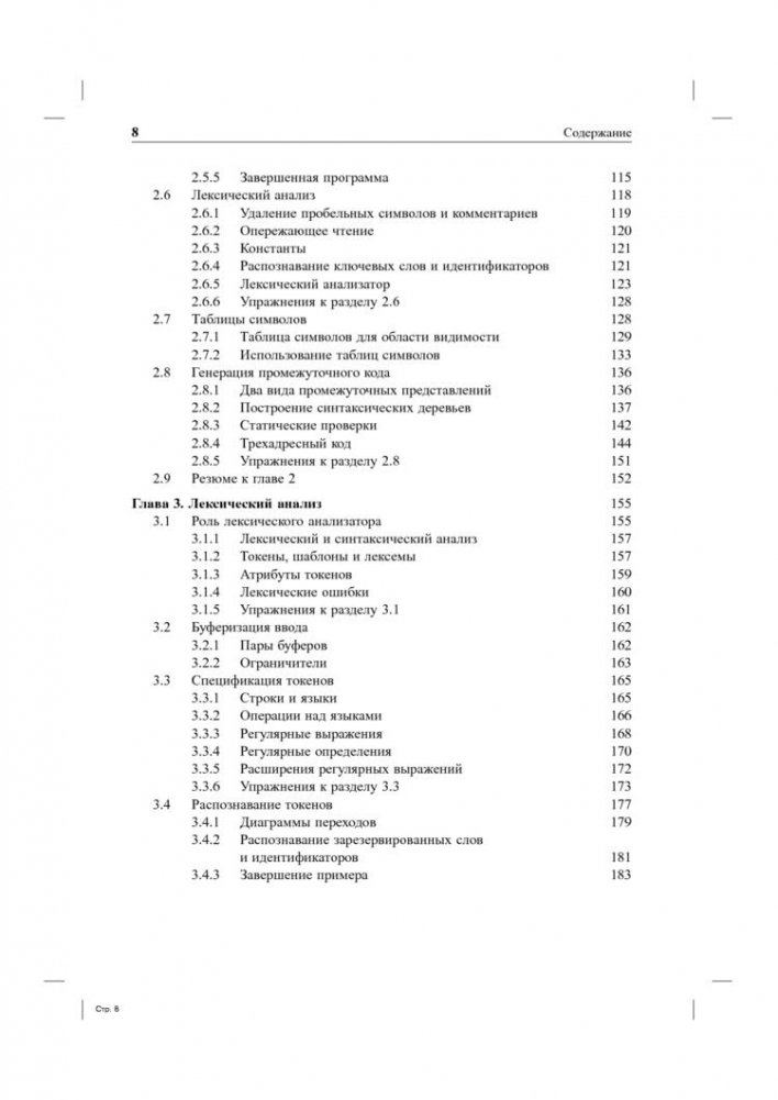Книга, как и предыдущее издание, начинается с изложения основных принципов разработки компиляторов, включая детальное рассмотрение лексического и синтаксического анализа и генерации кода. Особенностью данного издания является широкое освещение вопросов оптимизации кода, в том числе для работы в многопроцессорных системах.