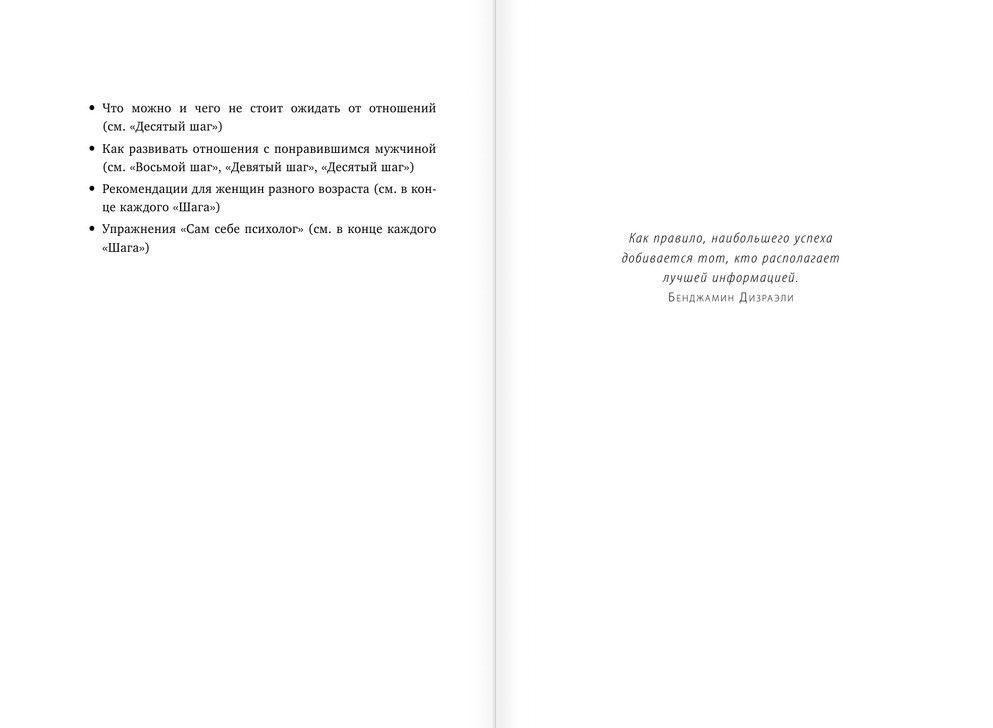 О чем эта книга: Встретить взаимную любовь можно в любом возрасте. Если вы не привыкли полагаться исключительно на везение и случай, эта книга-тренинг – для вас. Опытный психолог представляет полноценную программу работы над собой и решения проблем личной жизни. С помощью книги вы: - проработаете свой имидж, чтобы стать привлекательнее; - повысите самооценку и будете более уверенной в себе; - избавитесь от ложных установок и груза прошлых отношений; - поймете, в каких отношениях вам будет комфортнее всего сейчас; - узнаете, где и как познакомиться с подходящим партнером; - избежите при продолжении общения ошибок, которые совершают многие; - построите надежные отношения, о которых мечтали всю жизнь. Для кого эта книга: Для женщин, преимущественно от 30 лет. Кто автор: Надежда Либерман — психолог-консультант с двумя высшими психологическими образованиями и большим опытом работы в России и Германии. Занимаясь с 2006 года частной практикой, помогает людям решать их проблемы в личной и семейной жизни. Живет и работает в г. Дюссельдорфе. Особенности книги: - Книга-тренинг для тех, у кого нет возможности посещать «живые» тренинги. - Автор – опытный практикующий психолог. - Множество тестов и упражнений, которые помогут лучше понять себя и решить личные проблемы. - Эффективные советы и рекомендации для женщин разного возраста, с учетом их желаний и потребностей. Отзывы: "Если женщине исполнилось 30 лет, или 40, или 50, или 60, а она одинока, поиск «подходящего» мужчины может представлять определенную трудность. Это, увы, факт. Занимательные психологические тесты и пошаговые инструкции этой книги если и не сработают напрямую, то помогут разобраться в своих отношениях с противоположным полом". Наталья Горбунова, ведущий редактор журнала "Лиза". "Очень важно, что книга не написана в ключе «для всех, кому за 30». Ведь потребности и стремления у женщин 30, 40, 50 лет могут заметно различаться. Все рекомендации даны для конкретной возрастной категории". Ольга Маховская, психолог, писатель.