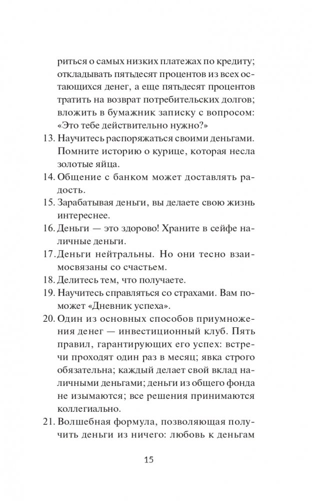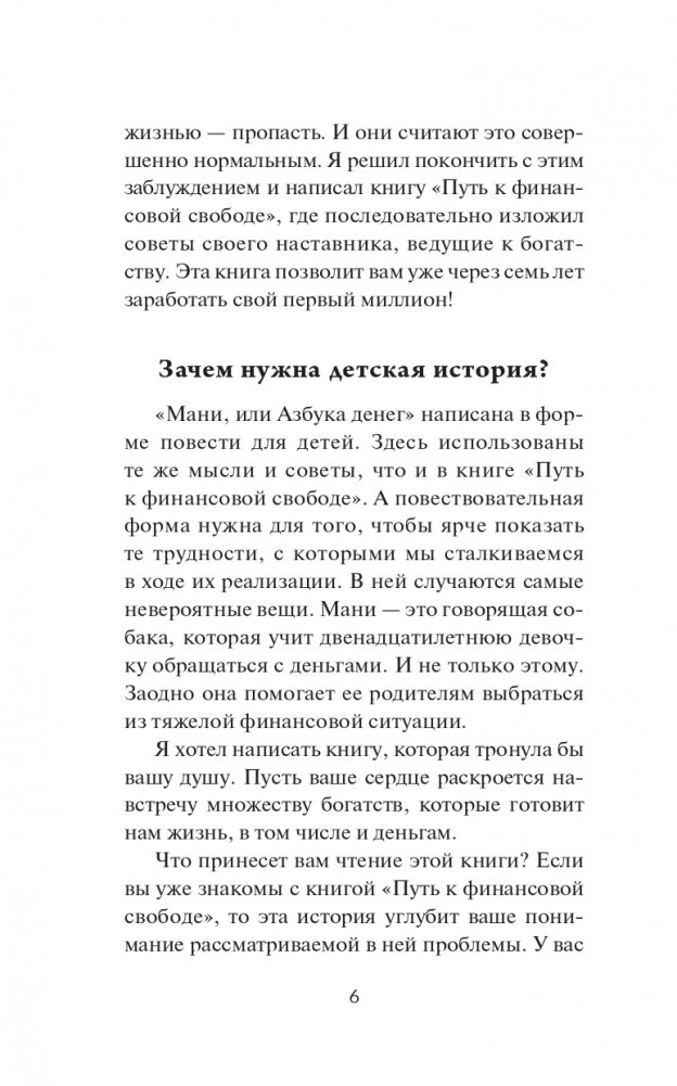 Читатели очень быстро заметят, что советы и идеи Шефера вполне применимы к реальной жизни, что человек любого возраста может реализовать их и научиться чему-то новому. Маленькие герои книги учатся обращаться с деньгами, беречь их, приумножать и избавляться от долгов. Они начинают понимать, как сделать так, чтобы мечта об обеспеченной жизни стала явью. Бодо Шефер абсолютно доступным для понимания языком разъясняет каждый шаг, ведущий к благосостоянию, и показывает, что удовольствие может доставлять не только обладание богатством, но и сам процесс зарабатывания денег.
