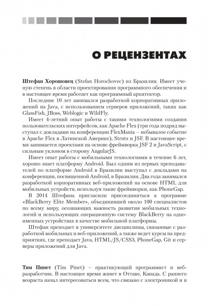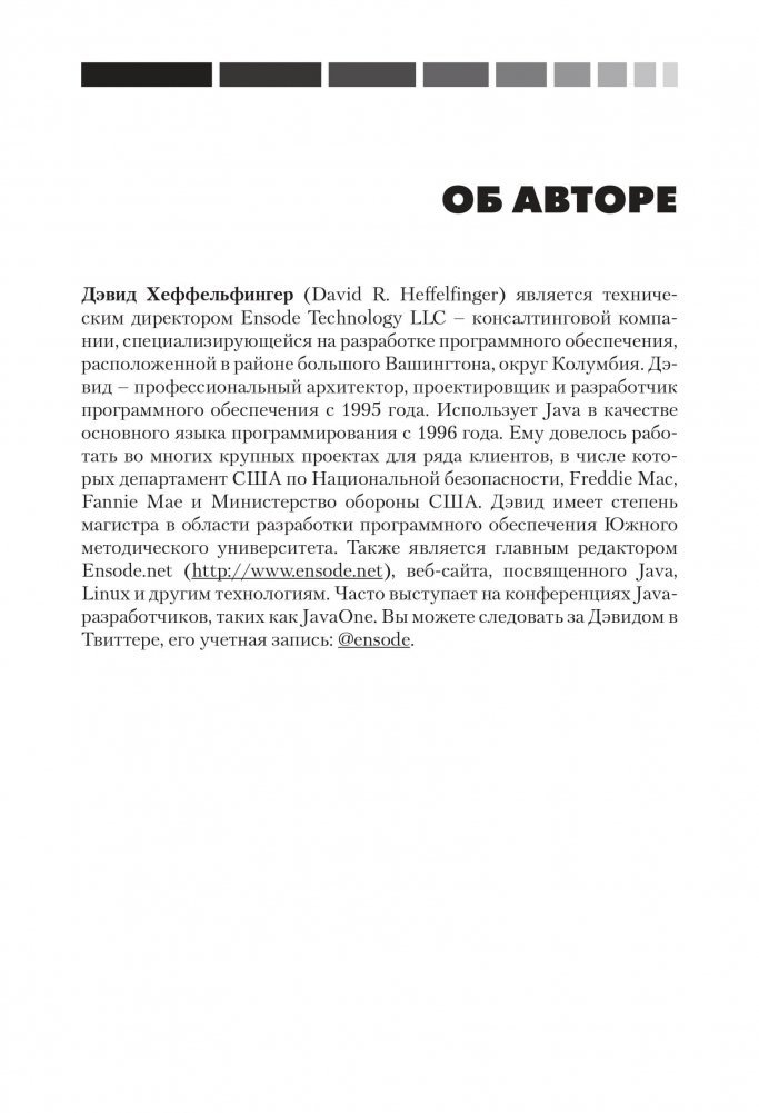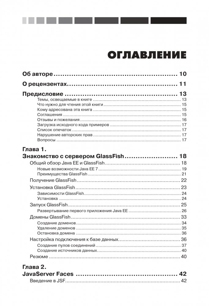 Книга представляет собой практическое руководство с очень удобным подходом, позволяющим читателю быстрее освоить технологии Java ЕЕ 7. Все рассмотренные основные интерфейсы Java ЕЕ 7 и подробная информация о сервере GlassFish 4 подкреплены практическими примерами их использования. Платформа Java Enterprise Edition (Java ЕЕ) 7 является отраслевым стандартом для корпоративных вычислений Java, а сервер приложений GlassFish представляет собой эталонную реализацию спецификации Java ЕЕ. В книге рассматриваются различные соглашения и аннотации Java ЕЕ 7, которые помогут существенно упростить разработку корпоративных приложений Java. Описываются последние версии технологий Servlet, JSP, JSF, JPA, EJB и JAX-WS, а также новые дополнения к спецификации Java ЕЕ, в частности JAX-RS и CDI. Рассмотрены задачи администрирования, конфигурирования и использования сервера GlassFish 4 для развертывания корпоративных приложений. Настоящее издание предназначено для разработчиков Java, желающих стать специалистами в разработке корпоративных приложений с использованием платформы Java ЕЕ 7. Для изучения материала необходимо иметь некоторый опыт работы с Java, однако знаний в области Java ЕЕ или J2EE не требуется. Книга официально рекомендуется компанией Oracle - разработчиком перечисленных технологий - в качестве учебного пособия.