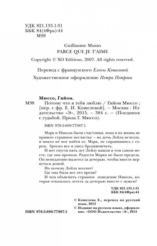 Поединок с судьбой Проза Г. Мюссо (обложка)