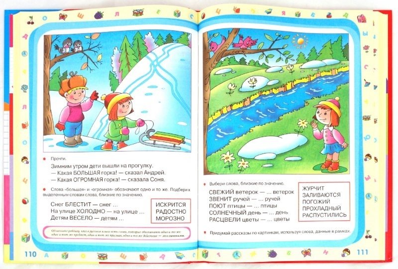 Уважаемые родители и педагоги! Эта книга предназначена для занятий с ребенком в возрасте 5-6 лет под руководством взрослых. В ней представлены задания, выполнение которых поможет подготовить вашего малыша к школе. Книга состоит из четырех разделов: "Азбука", "Развитие речи", "Первая математика" и "Память, логика, внимание". Изучая с вашей помощью материал этих разделов и выполняя задания, ребенок сможет получить разносторонние знания, а также развить умения и навыки, которые позволят ему в дальнейшем успешно учиться в школе. Благодаря занятиям по этой книге ваш малыш научится читать и пересказывать, складывать, вычитать и решать простые задачи, разовьет свою память, внимание и логическое мышление. Старайтесь, чтобы занятия по книге были веселыми и увлекательными. Начинайте их только тогда, когда у ребенка хорошее настроение. Выполняйте все задания последовательно. Переходите к выполнению следующего задания только тогда, когда малыш успешно справился с предыдущим. Для лучшего закрепления материала периодически возвращайтесь к пройденному. Прежде чем приступить к занятию, внимательно ознакомьтесь с рекомендациями для родителей, которые даны в рамках курсивом. Подходите к процессу обучения творчески, с любовью, и тогда у вас все получится. Обязательно хвалите вашего маленького ученика, даже за небольшие достижения. Желаем вам успехов в обучении и хороших оценок в школе!